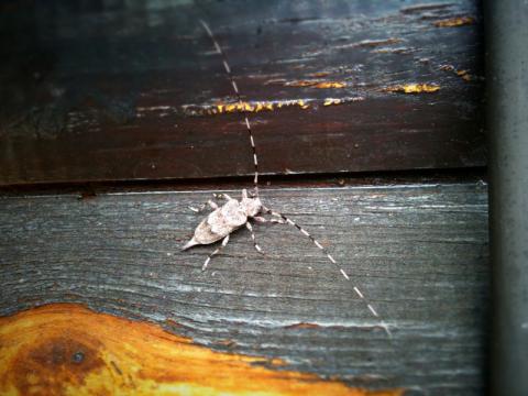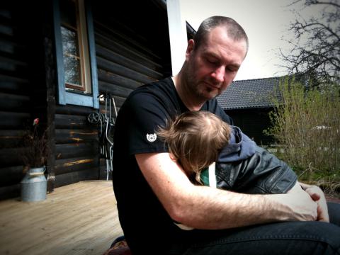 När jag jobbat klart idag, kom Fredrik och Olle hem från utflykt och supermys. Olle sov i bilen när dom kom hem. När han vaknade ville han direkt komma till pappas famn, och där korvade han ihop sig som en liten kanelbulle och såg nästan ut att somna om.. Jag tog en kaffe sen på farstutrappan. Så skönt i solen. Då helt plötsligt ser jag något i ögonvrån, som med mycket snabba fötter rör sig intill mig på trappan. Jag blir så paff när jag ser en mycket märklig insekt eller skalbagge, med spröt modell långa! Vilket tempo han hade. Jag fick knappt med honom på bild. Fredrik är nu orolig att det är chefen för en skara likasinnade baggar som nu har planerat att äta upp hela vårt hus.. Är det någon som vet vad det är för djur?