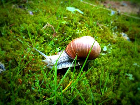 En egen dag med Olle! Idag hade dagis stängt och jag var tillsammans med Olle. När Fredrik åkt till jobbet, gick vi ut i trädgården. Olle blev till sig. »Mamma! Snigel« och snart pekade han igen. »En till!« Han började räkna hur många han såg, men efter sju sniglar blev det jobbigt. Vi såg ljusa, mörka och små och stora. »En snigelbebis!« utropade Olle och ville klappa dom minsta. Efter regnet inatt var hela vår trädgård befolkad av sniglar i alla vrår. Var kommer dom ifrån undrar jag?