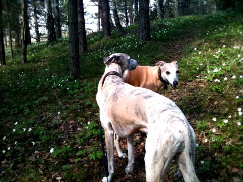 När Fredrik kom hem på eftermiddagen tog jag en hundpromenad. Det var 16° varmt, fullständig förhandsvisning av sommarkänsla. Jag njöt i fulla drag. Skogsdoft, varma vindar, sol, vitsippor överallt. Helt ljuvligt!