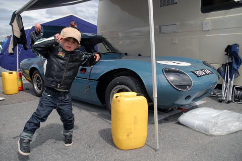 Äntligen var det dags! Både Pappa och Olle hade längtat till att få åka till Gelleråsen och kolla på historisk racing den här helgen. Det höll på att sluta redan i planeringen dock. Olle slog i käken i en stol och bet sig i kinden så det började blöda i går kväll. Han hade ont hela natten och svårt att sova och på morgonen såg han ut som en hamster på höger kind. Men han vill absolut åka racerbil. Vi gjorde goda kaviar- och äggmackor, fyllde kaffetermosen och saftflaskan för att sedan styra kosan mot Karlskoga. En lång resa så tidigt på morgonen. Olle passade på att sova lite innan Örebro. Ändå bara tråkig motorväg den biten. När vi kom fram var det racersportvagnar som körde. Olle gillade när de körde förbi läktaren men varje gång de var på andra sidan banan ojade han sig och sa ”de kommer inte tillbaaaaka…!” Men de gjorde de, varv efter varv.