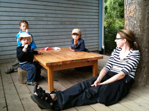 När jag hämtade Olle på dagis idag kunde jag inte höra eller se några barn alls på baksidan? Märkligt. Där brukade jag alltid se Olle leka och så ropade jag på honom och så brukar jag alltid få ett glädjetjut tillbaka av Olle! Jag gick in. Det var öde och tyst överallt. Men så såg jag! Fröken Maria och Olle med två barn till, satt helt sonika och åt varsin glass och njöt.. det var så rofylld stämning. Vilken lyx! Alla barnen var så malliga och ville visa sin glass! Sen vinkade vi hej då och åkte hem. Olle hade redan bestämt matmenyn ikväll, köttbullar och pasta! Och så ketchup såklart..!