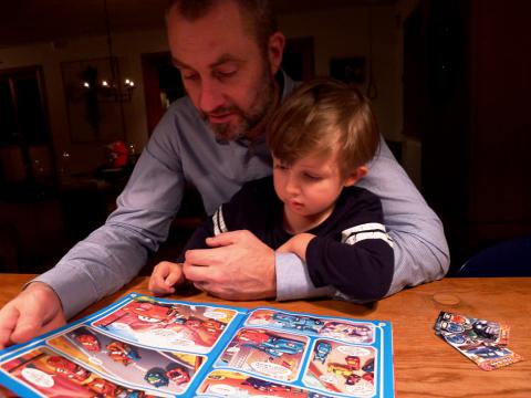 Veckan har gått fort. Vinterkyla med snö har ersatts av slask. Kvällar och mornar är mörka. Efter middagen idag är det fredagsmys. Pappa hade en överraskning till Olle, vars ögon var tefatsstora. ”Pappa! Vad är det för något?” Jo, det pappa höll bakom ryggen var ett nytt nummer av tidningen ”Blixten McQueen” med sagor och de fina samlarkorten – och en bil också. Självaste ”Tex” faktiskt! Nu är det dans på röda mattan till Olles musik, Oscar Linnros ”Från och med du”!