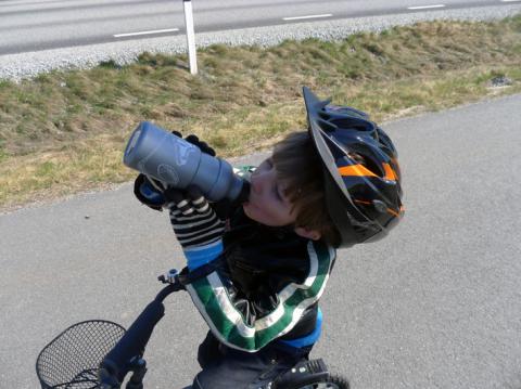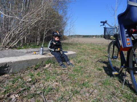 Idag var det dags igen. Olle ville ut och cykla och Pappa var inte sen att haka på. Vi fyllde vattenflaskan och tog med varsin muffins. Sedan bar det av mot Rosersbergs villastad där vi skulle se om Kjell-Arne var hemma. Kjell-Arne har en Mini, Mammas favoritbil och vi skulle se om den var startklar. Efter en jättelång cykeltur kom vi fram bara för att upptäcka att de inte var hemma. Så vi fick vända hem igen. Olle fick hjälp av en snäll brevbärare som puttade honom i ryggen när en backe var för brant. Olle vinkade till motorcyklarna som åkte förbi på stora vägen och alla vinkade tillbaka. En till och med tutade. När vi kom hem konstaterade Olle att han var helt slut, så han satte sig i en stol och tittade på Mamma som bökade med spaden i rabatterna. Alltid skönt att se någon annan i arbete. Snart är det dags för en liten bilutflykt och lunchstopp borta på ett fik i närheten.
