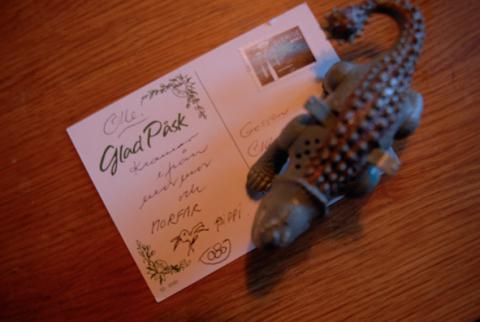 Olle blev så glad då han fick post – vykort från mormor och morfar. Han älskade den ritade fågeln och äggen!