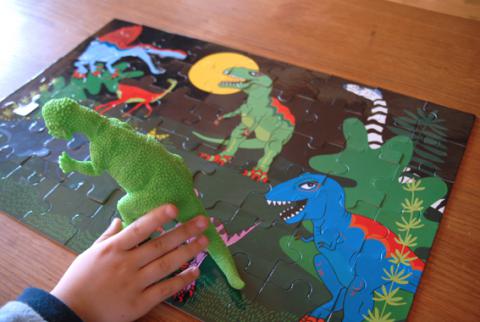 Kalasstart av lördagsmorgon, med frukost och prat och sen lek.. vi har vinkat hej då till pappa som åkte för att besiktiga en bil. Sen lekte vi kurragömma, Tuscan hjälpte till att tala om med skall var mamma gömde sig. Sen var det dags för pussel – oj så skoj!