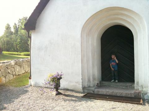 Efter lunch idag kom favoritvännen Karolina på besök med sin mamma! Det blev med ens total eufori i huset. Det skrattades, lektes och studsades omkring. När jordgubbar och glass dukades upp i köket, var det bara jag och Karolinas mamma som fikade, Olle och Karolina hade inte tid! Efter dryga 3,5 timmar av cykel, lek och skoj var det dags för de att åka hem. Det blev så tyst när dom åkte. Vad ville Olle göra då? Jo – cykla till slottet och bäbä, mamma! Sagt och gjort. Vi åkte iväg. En riktig sommardag på cykel med glad Olle som cyklade före mig – underbart. Vi stannade till vid fåren, men dom orkade inte komma fram och hälsa i värmen idag. Trist tyckte Olle, ”vi cyklar vidare!”. Vi styrde kosan mot slottet (kyrkan). Där var vi länge. Vi gick in till kyrkogården. Satt på bänkar, Olle gick på ”stigarna” som var så fint krattade. Det var en vilsam, tyst och vacker känsla där inne. Jag tror inte Olle riktigt förstod vad en kyrkogård var. Men han tyckte det var vackert! Vi cyklade sen omkring i närheten av slottet längs med infarten, fann han en vacker stor sten vid vägkanten, ”Mamma, titta! Vilken sten. Den är precis som en stol!”. Och där satt vi och njöt av utsikten och bara var ett tag. När vi skulle cykla hem hade vi varit på utflykt i över en timma. Olle var trött men envis och stark.. efter många micropauser på vägen hem pustade vi ut. Vi åt middag och avslutade innan läggdags med att ligga i soffan och läsa spontan-hitta-på-sagor och gjorde egna sånger och sen kom dinousarieboken fram.. När ögonen nästan gick ihop på mig och Olle var det surprise – en ny Bamsetidning att läsa efter tandborstning..! Vilken underbar dag. Och imorgon är pappa hemma igen – ”då ska vi bygga flygplanet i lego mamma!” sa Olle lite trött men glad innan vi släckte lampan och pussades god natt..