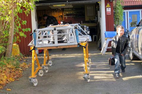 I helgen var vi och hälsade på vänner i Örebro. Olle hade en toppen-helg med goda vänner, smarrig mat och massor med hundar. Dessutom fick han följa med och bygga lite racer-bil tillsammans med Pappa, Janne och Micke. Olle hade med sig sin väska med bilar som fungerade som inspiration. Olle provsatt stolar och förklarade för Micke hur bromsarna fungerar. Vi ska snart komma tillbaka och se att bygget går rätt till. Olle är en petig beställare!