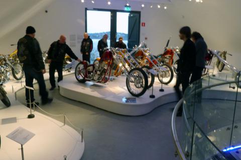 I morse var vi upp ganska tidigt och åt frukost. När det var klart blev det en del musiklyssnande och dans i vardagsrummet. Det var en del bus i benen och vi kände att vi inte ville vara inne hela dagen. Mamma skulle måla lite dörrar och Pappa och Olle klurade på vad vi skulle hitta på. I kväll får vi besök och Pappa ska vara kock, så vi ville ha lite kul på dagen innan arbetet börjar. Efter en stund bestämde vi oss för att åka till MC-utställningen i Edsviken. Det är en imponerande permanent utställning av en privatsamlare. Nu var det också tillfälligt besök av några utställda Choppers. Pappa och Olle fick sällskap av en gäng skäggiga gubbar i skinnväst och två 70-åriga tvillingdamer. Alla hade motorcyklar som gemensamt intresse. Skägg-gubbarna kollade på byggkvalitet och damerna mindes hur de åkte på bönpallen på gamla BSA. Alla hade någon drömmande i blicken. Speciellt som temperaturen krupit ner under noll utanför. Olle letade hemligt utlagda ledtrådar och vann ett fint MC-kort för att han hittade alla. Han hade nio favoritmotorcyklar och speciellt gillade ha crossarna. Pappa hittade både BSA som Farbror Janne har och en snygg Gilera som är samma märke som Pappas moppar i garaget. Det blev en riktigt mysig utflykt. Nu ska det lagas mat och förberedas.