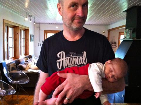 Vi börjar att förbereda oss på vår familjetripp till Skåne. När jag på kvällen skulle åka och handla mat, hade Fredrik hand om Maria. Väl hemma frågade jag om allt gått bra. Kvällstid är annars en väldigt »matintensiv« tid, hon vill gärna ammas nästan hela tiden. Då kommer Fredrik och visar. Maria sover så gott på hans arm. Lugnt och fint. Underbart!