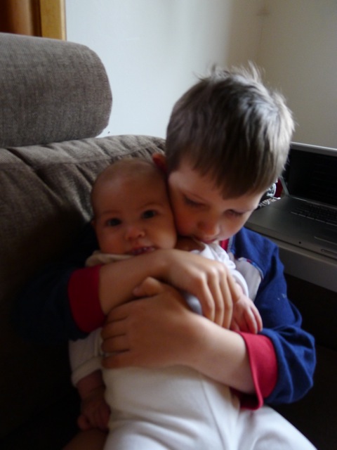 Olle kramar Maria. Hon får minst hundra kramar per dag..! Och, nu har Olle också börjat fotografera själv mellan kramarna på sin älskade syster. Det är så roligt att se hur han fångar bilder. Han väljer motiven. Nedan är två bildexempel..
