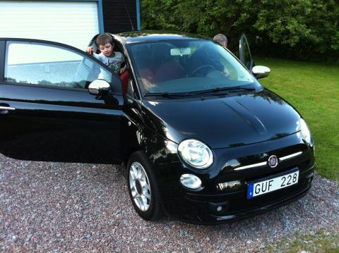 Välkommen hem lilla nya bilen! Adjö och farväl till min Rover. Nu har vi bytt om bland bilarna i garaget. Fredrik kör nu bensinsnåla och i mitt tycke mycket coola retrobilen Fiat 500 (fast i ny kostym) och jag är nu ägarinna till Fredriks bil – härligt! Olle har provåkt och godkänt den nya Fiat-kompisen och sa att det gick jättebra!