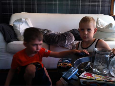 Hemma igen. Utan dagis är det lugna, sköna sommardagar. Men ibland saknar Olle kompisar, då är det extra skoj när dom kommer och hälsar på (eller vice versa). Nu har vi haft två dagar när Olle lekt med Alexander. Först hos oss, sen andra dagen lekte dom hemma hos Alexander. Full fart och vroom har det varit!