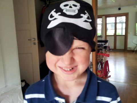 Igår var hela familjen i stan. Kikade förbi jobbet, in i gitarraffär, tog en god kaffe och sen lunch-middag på Tre Indier. Jättegott! Olle åt allt, härligt när det faller honom i smaken. När vi kom hem var klockan nästan halv sex på kvällen. Olle hade fått ett paket i brevlådant! Spännande! Det var fint inslaget från Dalarökusinerna – ett födelsedagspaket! Oj vad Olle blev förvånad och glad. Han testade direkt innehållet, en jättefin drake, ett piratöga och så en tillhörande tuff piratsjal! Tack så mycket för det, vilken överraskning säger Olle!