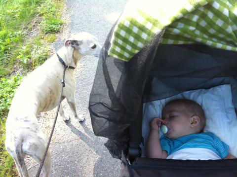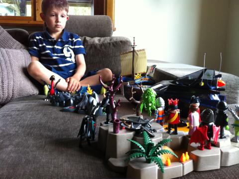Fredag innebär ju helt ledig fredag för Olle med mig och Maria plus vovvar. Imorse frågade jag Olle vad han ville göra idag. Han sa, ”Jag vill bara vara hemma och ta det lugnt mamma..”. Så blev det. Vi lekte mycket, hade lugn och ro hela dagen. Vi gick på lunchpromenad där Olle hade spontana blåbärs- och hallonaffärer vid dikeskanten. ”Kom och kööp, är det någon som vill ha blåbär – två stycken för 150 kronor..” ropade Olle. Klart mamma ska köpa. Maria kunde inte sova när det hände så mycket spännande utanför vagnen såklart. När Maria till sist somnade och sov en stund på altanen i vagnen, tog vi ned två fartyg och drakberget och med full besättning i lego till soffan. Jag var prinsessan, Olle drake och övriga figurer..
