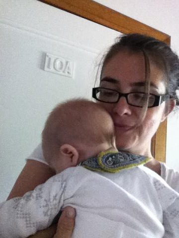 Imorse vaknade Maria klockan halv åtta. Jag hörde via babyvakten ett mysigt ljud inifrån hennes rum. Inget skrik. Inget bråttom-kom-ljud heller. Där låg hon i sängen och småpratade, med ’små bokstäver’, som min mamma skulle ha sagt. Jättemysigt. När jag kom in i rummet, kollade hon in ena foten, filosoferade.. Hon blev så lycklig när jag började prata, att hon skrattade och sprätte till med hela kroppen. Och gissa vad? Hon hade rullat och förflyttat sig till fotändan i sin säng..! Premiär för det!