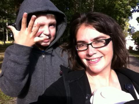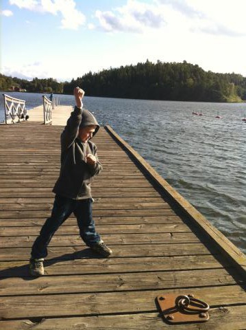 Det är så mysigt när jag hämtar Olle vid halv tre. Då är det mellanmålsdax på dagis. Idag, när solen tittade fram på eftermiddagen, satt alla barn i Olles grupp Bergakungarna, ute och fikade. Vi åkte inte hem direkt, utan tog en tur till slottsparken. Maria sov i BabyBjörn, vovvarna var glada att nosa lite andra grästuvor än vanligt. Olle visade mig de vackra stora höstlöven. Nej mamma, sa han. Det är inga höstlöv. Det är trädstjärnor, ser du så fina dom är? Sen gick vi ned mot vattnet, Olle kastade lite stenar. Sen blev jag prinsessa och Olle hittade sin häst (staket), vi fann blommor som doftade så gott i jättestor kruka. Äventyr efter dagis..! Väl tillbaka vid parkeringen igen hade Polisens tullenhet träning med minst 10-15 hundar och förare där. Tuscan och Aston uppförde sig ypperligt mot vår bil. Inte ett skall eller ens pip. De bara hoppade elegant in i bakluckan. Världsvant!