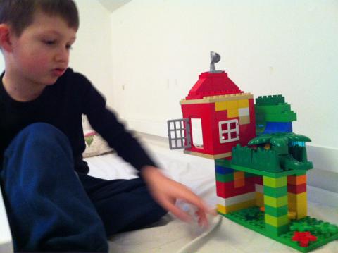 I lördags vaknade Olle och hade feber. Jag kan inte minnas när han hade feber sist. Han vilade hela lördags, med trötta ögon och lite varm panna. Söndagen förflöt. I måndags gick vi till dagis. Men efter en timma ringde dagis mig, och sa att Olle var hängig och bad mig hämta honom. Sen har han varit hemma både tisdag och idag onsdag. Vi har lekt, sett på film, vilat och varit inomhus nästan hela tiden – förutom korta vagnspromenader när Maria ska sova efter sin klockan tio-gröt. Vi har byggt med lego, jag har fått uppdrag av Olle när jag varit Finn McMissile bilen i Cars2, vi har räknat alla pengar i Olles spargris och pysslat i pysselboken och testat att rulla ihop alla Bakugan.. Maria har hängt med hon med. Nu känns det som att Olle är på gång tillbaka!