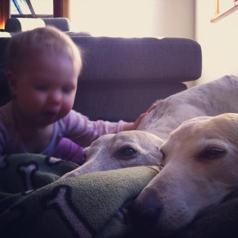 Maria älskar djur! Tuscan och Aston går hon ofta till och lägger sitt huvud mot deras kropp och ler. När vi ser katter på väg till eller från dagis pekar hon upphetsat, ”Tita! Tita!” med gäll röst. Glädjen går inte att ta miste på. Jag håller en tumme att hon blir hästbiten också..