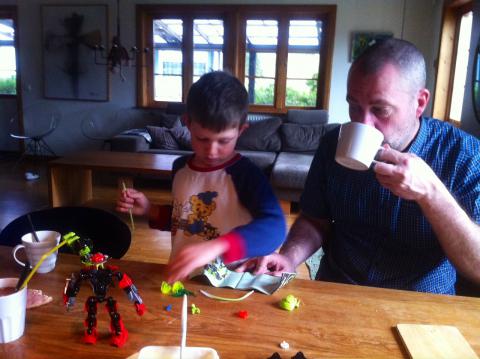 Idag är det den stora dagen. Olle fyller 6 år och blir bara en större och större grabb! Och det är även första dagen på Pappas 4 månader långa pappaledighet. Alla anledningar att fira med andra ord! Vi gick upp tidigt då Mamma var tvungen att göra sig i ordning för jobbet. En ganska ovan uppgift efter ett år hemma. Vi väckte Olle som redan igår meddelade att det var tidig väckning som gällde så han kunde komma igång snabbt på sin dag. Presenterna som Pappa och Mamma var exakt vad Olle önskade sig och kompletterade perfekt vad han fått av kusin Karl någon dag innan. Det blev en frukost med instruktionsböcker och byggande. Superkul! Nu är Olle på Dagis och snart är det dags för gröt för lilla Maria. Allt börjar toppen!