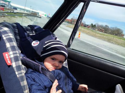 Idag ville inte Maria sova riktigt så länge som hon brukar på förmiddagen. För att inte bara skrota runt hemma så funderade vi på vad vi skulle göra. Först blev det lite lek och bus utanför huset men sedan bestämde Pappa och Olle tillsammans att vi skulle ta en Stag-tur och att Maria skulle få känna på lite vindrufs i håret. Först åkte vi ner till Slottet och åt varsin glass. Vi tog en lång promenad och Maria gick hela tiden. Oftast åt fel håll men alla fick i alla fall motion. Sedan åkte vi förbi Kjell Arne som var hemma och satt och mekade lite på garageuppfarten. En trevlig eftermiddag lite på chans så där. Nu är det mellis!