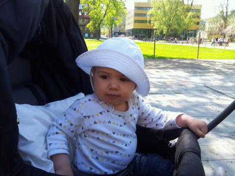Idag tänkte Pappa testa att åka in med Maria till stan. Vi slapp köerna och kunde parkera ganska enkelt på Kungsholmen. Först gick vi och hälsade på Janke i hans affär. Maria var lite blyg i början men efter en stund charmade hon både Janke och hans kollega Leif. Pappa blev sugen att köpa en kavaj men avstod. Efter Janke-titten gick vi över till Vasaparken och tog ett litet mellanmål. Maria åt med god aptit trots att det kom lite dunster av cigarettrök och pilsner från gubbarna som satt på en bänk lite längre bort. De skrattade gott men det var säkert barnförbjudet så vi avslutade vår matstund, sa hejdå och gick vidare. Efter en liten promenad somnade Maria så sött i vagnen och Pappa kunde smita in på Biljardpalatset och spela några timmar Carambole medan Maria snusade i godan ro. En perfekt dag på stan som slutade i exakt tid för att komma hem och hämta Olle på dagis!