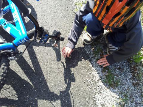 Olle och Pappa har ju som vana att varje dag cykla på ganska långa utflykter. Nu har Pappa blivit van att Olle helt plötsligt tvärstannar med en sladd och skriker stopp! Då ska det flyttas snigel. Olle har en förmåga att hitta sniglar som förirrat sig ut på asfalten och varje liten individ får hjälp att komma in i mer snigelvänliga skogsområden av den gode samariten Olle!