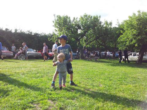 Idag var det så fint väder att Maria, Olle och Pappa tog bilen och åkte på gammelbilsträff utanför Uppsala. Vi åkte tidigt så vi kunde äta gott på restaurangen först och sitta på första parkett med god mat när alla rullade in. Olle tittade storögt på alla motorcyklar och konstaterade att Ford Mustang var väldigt välrepresenterade på just denna träff. Sedan fanns det en blandad kompott av mer eller mindre intressanta bilar från både Italien, Sverige, England, Tyskland och USA. Vi tog varsin glass och strosade runt lite innan vi rullade hemåt med vinden i håret. Nu badas bensinångorna bort!