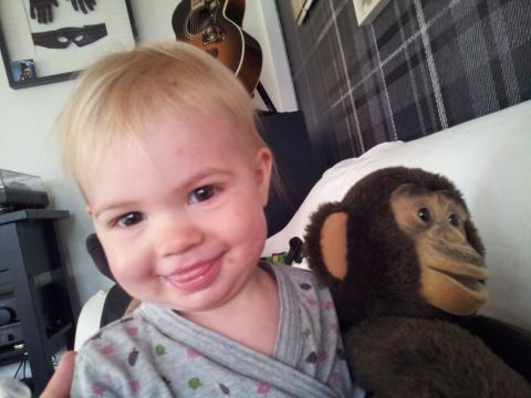 Maria har fått en ny kompis i den sydamerikanska apan Alejandro Fuentes Bergström, känd från radion. I situationer där Pappas ord inte duger så lyssnar Maria direkt till Alejandros råd, till och med med ett skratt. Om gröten inte smakar kan Alejandro som med ett trollslag få Maria att äta upp hela tallriken. Om humöret inte är på topp kan Alejandro få ett smajl tillbaka på Marias läppar. I morse när vi kom ner till köket tittade Maria sig omkring och ropade ”Dä, dä, dä..!” tills Pappa förstod att det var Alejandro vi var tvungna att hitta. Sedan åt de två en mysig frukost tillsammans!