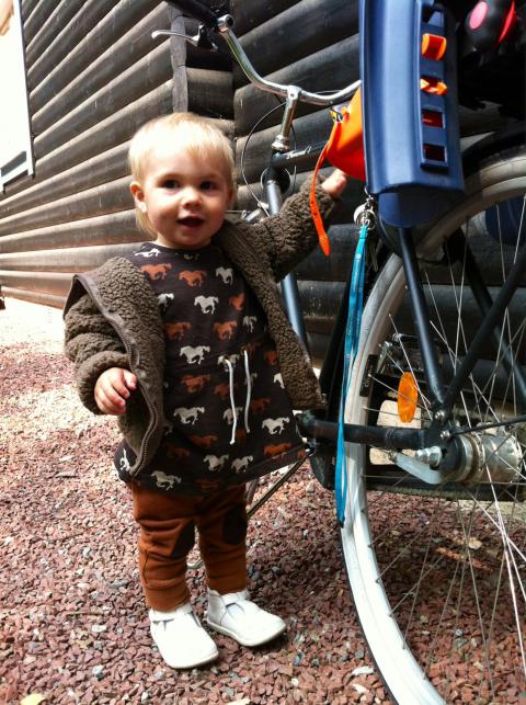 Maria älskar nycklar. Och spännen i bilbälten, och spännen i cykelhjälm, knappar i pyjamas. Kort sagt, saker som skruvas eller trycks ihop, eller något som händer om man vrider om. Haka i och ur. Knäppa av och på. Ju mer komplicerad konstruktion, desto bättre. Hon kan sitta i total koncentration efter cykeltur, när hjälmen är av, och sätta ihop hakskyddets spänne i hjälmen – av och på. Av och på. Om och om igen. Idag tog vi en cykeltur på eftermiddagen. Det ger sådan frid i sinnet att cykla och höra Maria ljuda bakom mig på cykeln, smånynna eller prata med egna ord. Ibland pekar hon. När motorcyklar kommer, så skriker hon av glädje! Jag har upptäckt att hon vinkar till alla motorcyklar också. Det måste hon ha blivit inspirerad av Olle, tänker jag. Idag så, efter vår cykeltur ville hon absolut ha nyckelknippan, och hon fann direkt pappas cykelnyckel bland de olika nycklarna. Den är det! Den satte hon i – helt rättvänd – i pappas cykellås. Glädjen och stoltheten när hon till slut efter lite fixeri fick i hela nyckeln, och låset öppnades med ett tydligt ’klick!’ var underbar att skåda (jo, jag hade först redan hunnit låst cykeln). Sen stod Maria länge, och testade. Om och om igen. Glad, glad, glad! Mamma, titta! Jag kan!