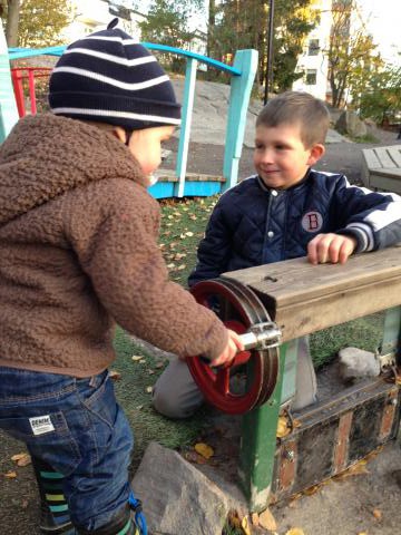 Idag efter dagis och fritis körde jag med Olle och Maria till Mulle Mecks lekpark i Solna. Jag hade också packat en hemlig väska med matsäck. Vilken överraskning det blev! Bägge barnen upptäckte och lekte överallt i denna underbara lilla lekvärld i flera timmar. Skönt trötta och nöjda åkte vi hem och mötte pappa och hade fredagsmys hemma..!