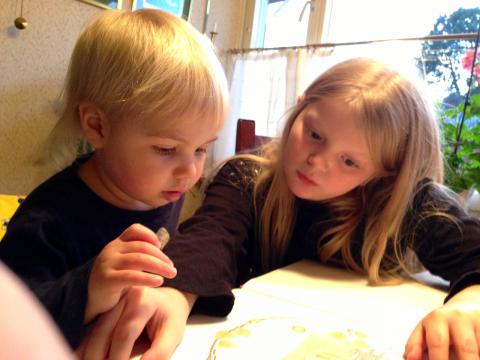 Idag var det träff hos mormor, Saga och Lisa var redan där när vi anlände – jag, Olle, Maria och vovvarna. Vilken fin dag det blev. Det blev god fiskgrytelunch, en stund i lekparken och tur till Ica där mormor köpte glass till barnen. Olle lekte med Saga och Lisa, vad roligt att höra deras samtal lite på distans i köket. Lisa ville hjälpa till med Maria, läste saga för henne, ville hjälpa byta blöja, dra vagn på promenad. Jag fick också egen stund när jag åkte till centrum och därefter åkte jag för första gången själv till pappas grav. Mamma tog hand om alla barnen ensam. Vi hade planerat att sova över, Olle var till sig av lycka. Men på eftermiddagen tänkte jag att det skulle bli alltför omständigt, så jag avstyrde planerna och så åkte vi hem istället. Maria somnade en stund i bilen på hemfärden, ute var det mörkt. Så hör jag Olle gråter i baksätet. Han var framåtlutad och hade gömt ansiktet mot knäna, tårarna rann, han ville så gärna sova över.. Jag lovade att ringa mormor och säga det, och hälsa det till kusinerna. Vi måste ses snart igen, bad jag mormor hälsa också!