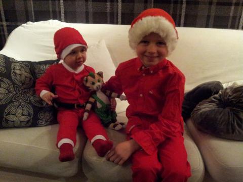 Igår var Olle supertydlig med att det skulle vara tomtekläder till skolan. Samma sak med Maria, har man övat in alla fina sånger med rörelser till så måste man ju så klart vara fin! Sagt och gjort! Pappa fixade lite ekipering på stan och morgonen blev precis som efterfrågat. Det blev en jättefin Lucia på Dagis och Olle kom hem nöjd efter en bra dag på skolan. Nu är det fredagsmys för de små tomtarna!