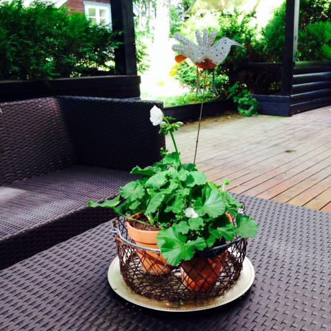 Midsommarhelgen nalkade sig. Det traditionella firandet hos Fredriks syster med familj och föräldrar, i Dalarna närmade sig. Jag blev dock förkyld och riktigt risig och insåg dagen före midsommarafton, att jag inte orkade följa med. Så, jag vinkade hej då till Fredrik och barnen – och var själv hemma med hundarna i två dagar. Det kändes väldigt ovanligt. Så tyst det var hemma. Inga barnröster eller skratt. Jag sov första natten i tio timmar och kände att jag gjorde helrätt som inte följde med och därmed också slapp att smitta ned resten av gänget. Via sms och mejl och telefon fick jag uppdateringar från Fredrik hur deras firande förlöpte i Dalarna, med full redovisning över barnens mat, sovtid och sysselsättning – så skönt. Så jag var nästan med på ett litet hörn i tanken! Idag kom de hem i alla fall. Äntligen kramas! Fredrik tog en golftur och jag och barnen åkte och köpte glass (och jag fem vita pelargoner) på Plantagen på eftermiddagen. Imorgon börjar jobbet igen!