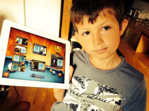 Imorse var Olle så stolt. ”Mamma! Jag är i FINAL!” Hans biljardspel på iPad som han faktiskt lär sig hur man spelar ’på riktigt’ – är roligt, tycker Olle. Dessutom, de han spelar mot i biljardmatcherna är ingen automatisk figur i spelet – utan det är någon som sitter och spelar live – någonstans i världen mot just Olle. Det är häftigt! Det finns olika svårighetsgrader och Olle visar mig vilka länder hans motspelare kommer ifrån. En spelare kommer från England, Japan och USA. En del skriver ut sitt namn och har ett foto. Hur ser du vart de kommer ifrån undrar jag? ”Det ser jag ju på flaggan brevid deras namn!” svarar Olle. Såklart!