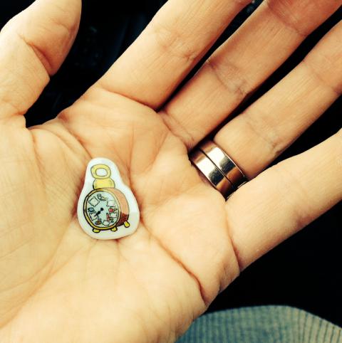 Mitt i morgonrutinerna på torpet, hittar Maria detta lilla klistermärke på hallgolvet. Det är Bamses kompis Skalmans ät- och sovklocka. Jag stannade till i köket och kikade lite på håll. Maria tog upp märket. Höll det hårt i handen. Letade efter en ficka att lägga det i. Men idag hade hon andra kläder än igår. Det fanns ingen ficka. Hon kom fram till mig. Visade, ”Titta mamma! En KLOCKA!” Hon var så glad. Under hela frukosten höll hon hårt i klistermärket. När vi skulle iväg till dagis och fritids, ville hon INTE släppa märket. ”Klocka med” sa Maria bestämt. Så blir det. Väl inne på dagis visade hon alla fröknar sin fina klocka. Jag sa att idag har jag fickor på min jacka, som du hade igår Maria, på din tröja. Maria tittade på mig, tog lilla märket och sträckte sig på tå och la in i min jackficka. Hon var mycket nöjd! Vilket förtroende. Puss och vink och hej då!