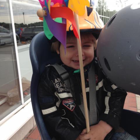 Efter lite bilfixeri och testkörning för Fredriks del denna morgon, tog vi alla en cykeltur till Plantagen och tog en glass. Maria fick också en fin snurra som rör sig så fint i vinden. Litet pusskalas av pappa blev det innan vi cyklade hem igen! Fredrik och Olle åkte till gocart-banan när Maria sov så sött på altanen efter lunch. Jag tog min kaffe i kontoret när hon sov, och planerade för fotograferingen på jobbet på måndag. Ingen hästplåtning idag dock, inställt då det var så blåsigt och tråkigt väder!