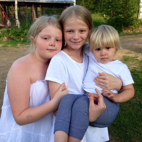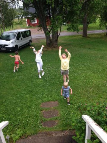 I torsdags träffades kusinerna Olle, Maria, Saga och Lisa tillsammans med Mormor och Christina för att från Arlanda flyga mot en veckas äventyr i Norrland. På rapporterna jag får via SMS och Mail så verkar det vara full rulle hela tiden och ett riktigt äventyr, precis som vi hoppats på. Det badas och leks, man träffar alla trevliga släktingar och barnen får hela tiden något nytta att göra. Idag lagades först pannkakor och sedan avbröts maten helt naturligt för lite regndans i trädgården. Tyvärr har inte Christina någon uppkoppling för att själv sköta bloggandet där uppe så jag får vara stand in på distans. På temat ”En bild säger mer än tusen ord” lägger jag därför upp lite bilder jag fått mig tillskickat så får ni bilda er egna historier!