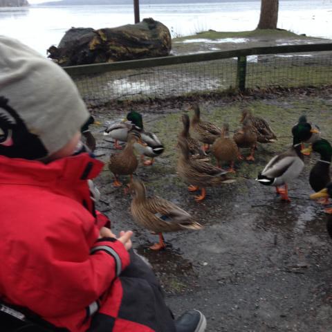 Idag, imorgon och måndag är jag ledig. Känns lite lyxigt att få vara ledig – efter all jul- och nyårsledighet! Jag har ju jobbat tre dagar under ledigheten, och det var bra och nu kan jag njuta lite till av några extra dagar.. Olle började skolan igår, så nu är det bara vi tjejer hemma! Vad skulle vi göra? Vi åkte till Sigtuna! Det var spännande med alla nyfikna och kanske hungriga ankor som kom springande mot oss när vi gick vid vattnet med barnvagnen. Maria skrattade mycket åt deras ’prat’. Vi styrde sedan kosan mot RC Chocolat, där vi tog liten fikapaus. Jag tog te och liten mintpralin, Maria valde hemmagjord hallonsaft och chokladboll. Maria tyckte det var roligt att leka tittut också bland alla borden..! Och kurragömma! Efter det var det dags för lekparken, och här bestämde Maria – det var gungorna som gällde! Hon skrattade så hon kiknade..! Lunchmenyn då? Jo – pannkakor, mamma..! Så blev det.. Sen dryga trekvarts promenad med vovvar och en trött Maria i vagn, där vi gick på golfbanan.. När Maria sovit klart hämtade jag Olle och hans kompis Markus från skolan, Maria älskar att få följa med och möta alla skolbarnen och se allting överallt. Vilken kanondag!