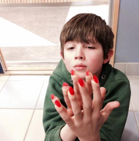 Efter arbetsdagen var slut, hämtade jag Olle på fritids. Han hade jättefina långa, röda naglar på sig, ”Titta mamma!”. De kom från någon utklädningslåda, eller var det ett spel? Våren är på väg..