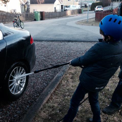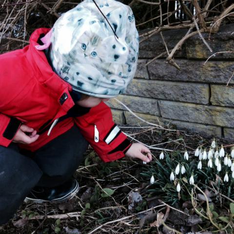 När vi kom hem igår från stan, såg vi lite vårtecken i trädgården. En liten försynt grupp Snödroppar syntes på den gråa gräsmattan. Vi ville vara utomhus. Maria hoppade upp i gungan som överlevt hela vintern under en massa snö i päronträdet. Olle tog fram sparkcykeln. Jag rensade bort lite bland buskarna. Fredrik tvättade sin bil. Det är lite ljusare ute. Vårtecken!