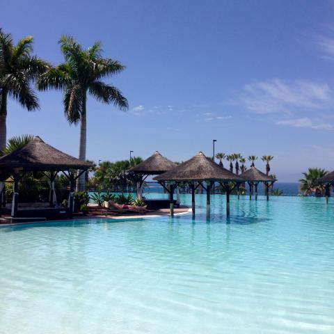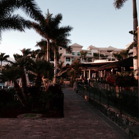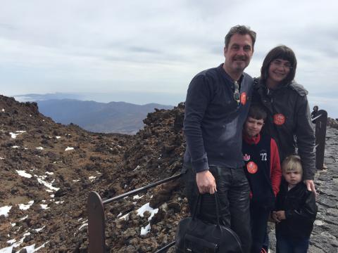 En veckas resa till Teneriffa gjorde vi kring påsk. Och vilken underbar resa vi hade.. !Flygresan på 6 timmar gick jättefint. Det var film för barn och vuxna, och lunch. Vi bodde på fina hotellet Sensatori Palacio de Isora på Alcala, som låg på västra sidan på ön. Hotellet var otroligt stort och vackert, med olika pooler. En barnpool, piratpoolen och en familjepool och en havspool. Precis utanför hotellet fanns vacker strandpromenad till havet. Jag blev så förtjust i vackra grå stenlagda ytorna på hotellet, vi undrar om det är lavsten? Det tillsammans med varm ek var en fin kombination. Vi åt frukost på innergården, barnen fick pannkakor och smörgås och dricka. Det fanns olika restauranger som vi bokade bord på på morgonen inför nästa dag, till lunch och middag. Vi hyrde bil en dag och åkte kringelkroksvägar till högsta berget Tejde. Det var verkligen ett äventyr! Väl uppe vid berget tog vi linbanan och åkte.. ända upp till toppen! Där var det minusgrader, snö och kall blåst! Sedan tog vi bilen och åkte till Puerto De La Cruz, vi gick förbi hotellet ”Concordia Playa” som jag och mamma och pappa besökte när jag var liten. Annars hade vi 25 gradig värme och mer. Det kändes så härligt med denna sköna värme. Det blev mycket bad och sköna dagar tillsammans. Olle avslutade veckan så fint vid en middag, när Fredrik frågade, vad var det bästa med resan? ”Att vi har umgåtts så mycket” sa han. Vi ville verkligen inte åka hem.. Vi kanske kommer tillbaka!
