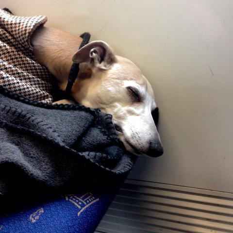 Fredrik har varit sjuk i influensa den här veckan, och är inte riktigt kry än. I måndags var dagis stängt, så Maria var hemma med Fredrik hela dagen. Aston har varit hemma med husse. Det har varit regn och kyla denna vecka. Men idag, när Aston skulle följa med mig in till stan, så kom solen ute..! Det är sån lycka att ta med Aston, på tåg, gå med honom i stan..