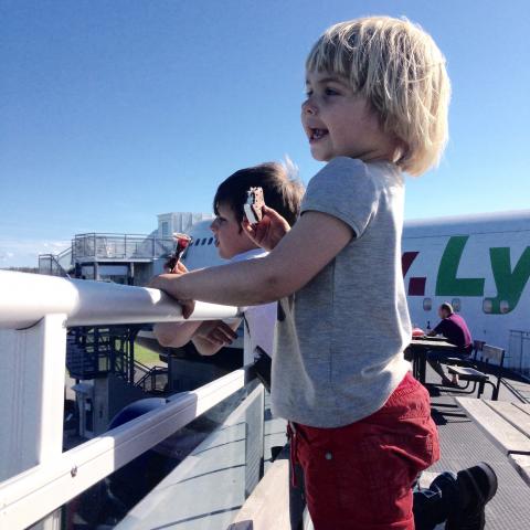 Idag efter fritids och dagis tog jag med barnen till Arlanda, och flygplanet Jumbostay! Det är både cafe och vandrarhem, och man får leka och röra planet. Det blev glass på flygplansvingen, sen lek nere på marken. Det är något speciellt att sitta i gunga på gummidäck från flygplan, de är jättestoora!
