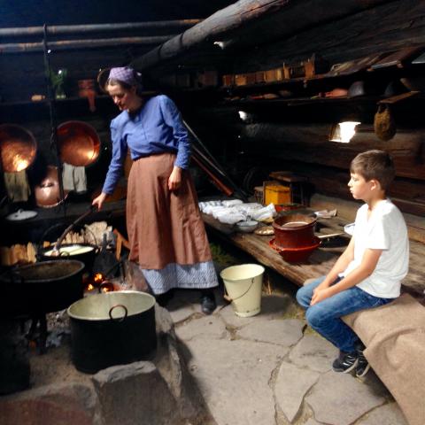 Idag var det dags för besök på Skansen! Det var lagom varmt, lagom med antal besökare, perfekt. Det bästa med besöket var nog när vi tittade in i ’eldstugan’, där en kvinna kokade mesost på traditionellt sätt. Det var som att kliva tillbaka i tiden att vara där. Olle blev andäktig och viskade till mig, ”Här vill jag bo..”