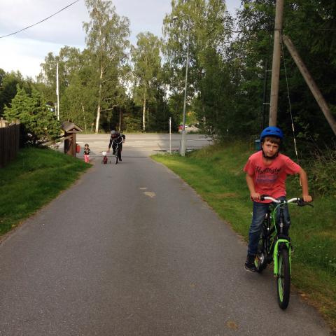 Cykelturer tar vi ofta. Ibland är det skönt att trotsa vädergudarna och ta en tur ändå – fast det regnar! Inne lekar vi och kan se en eller annan film också. ’Träd Fu Tom’ är Marias Svt-favorit nu, ’Alfons Åberg’ likaså. Jag fotade också lite häst, innan regnet dök upp en dag.. Lycka!
