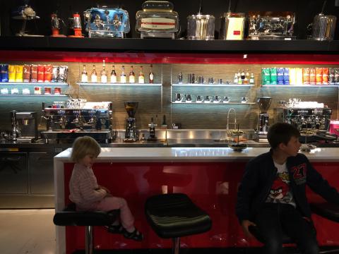 I dag var vi uppe i ottan. När sömnen väl gnuggats ur ögonen tog vi en lite frukost och sedan bar det av. Först skulle Pappa lämna några fälgar för däcksbyte och därefter körde vi en bil på släp till en verkstad. Bra att ha med Olle och Maria som assistenter! Allt gick på rulle och nu har vi landat i stan. Först lite bestyr på fina kaffeaffären där Olle och Maria direkt hittade sin plats, och sedan ska vi ha skoj på spårvagnsmuseum!