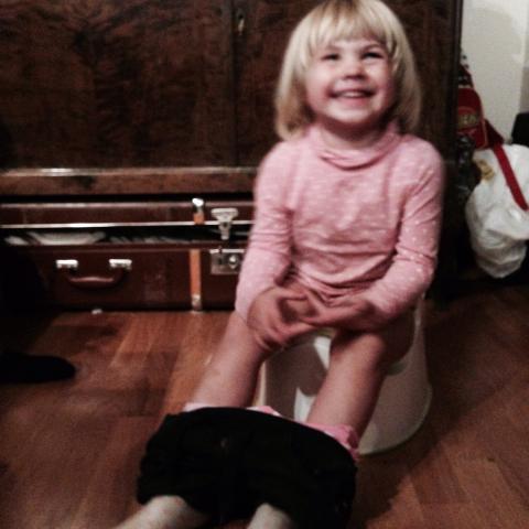 Tiden går.. Olle går på Par Cour-träning på lördagar, Maria ska börja på danskurs på söndag med Jennifer, Aston har varit två gånger hos veterinär.. Men det roligaste är. Blöjfriheten! Maria går på pottan! Toaletten! Själv! Hon säger, – Mamma.. Jag är kissnödig! Och det är underbart att få höra. Snart inga mer blöjor. Stort!