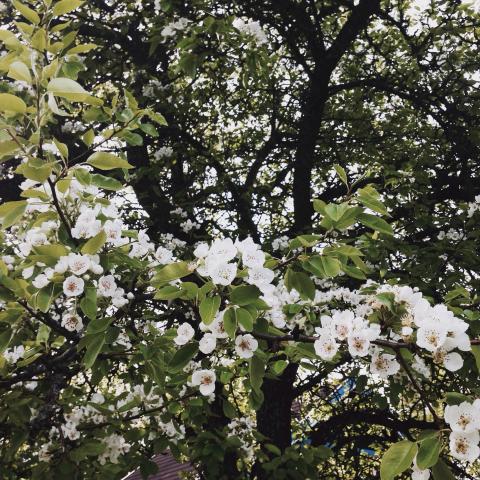 Ååå. Grönskan, fåglarna, surret ute. Vårt äppel- och päronträd blommar. Kanske vackraste någonsin! Och häggen har snart blommat ut, Syrenen står på tur..