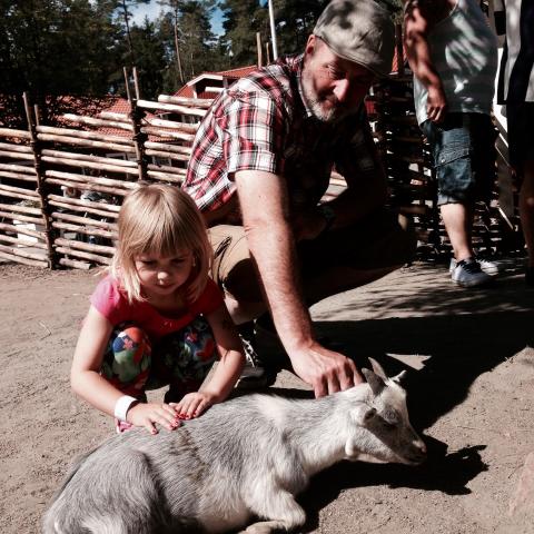 Igår tog vi en heldag på Kolmårdens djurpark, äntligen skulle det bli av! Det tog drygt två timmar att åka dit med bil. Vi kom när dom öppnade klockan tio, och redan då var parkeringen nästan full av bilar! Det var stort. Jag förstår att man kunde köpa två-dagars biljett. Men vi hade en jättefin dag! Fint väder, och bara gå runt att Upptäcka! Vi gick först till Bamses värld. Så fint det var. Vi åkte Godiståget, en mindre bergochdalbana – det pirrade i magen sa Olle. Vi åt pannkakor i farmors kök. Sen fortsatte vi vidare, såg fler djur, och gick mot Wildfire – senaste attraktionen – Europas högsta berochdalbana i trä! Jag var helt inställd på att åka, men skippade det för den här gången.. Jag och Maria åkte Delfintåget, mindre bergochdalbanan som fanns brevid. Jättekul! ’Igen!’ Sa Maria efteråt. Bland det bästa var ändå linbanan över ’safarin’. Nästan ljudlöst åkte man högt upp över djurparken och såg alla djuren. Björnarna, lejonen, älgar, antiloper, giraffer och massor av andra djur. Vi kommer tillbaka!