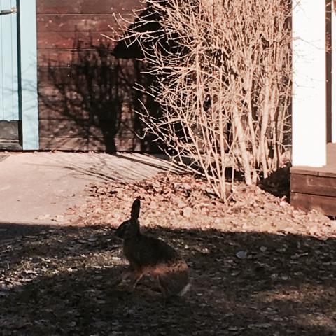 ..är en stilig hare! Och en vacker brunröd ekorre ser jag ofta i vår trädgård. Jag hälsade på den senast imorse efter kisseturen med Herr A. – Matte, titta DÄR! tycktes Aston säga och såg ekorren tydligt hur den skuttade iväg..